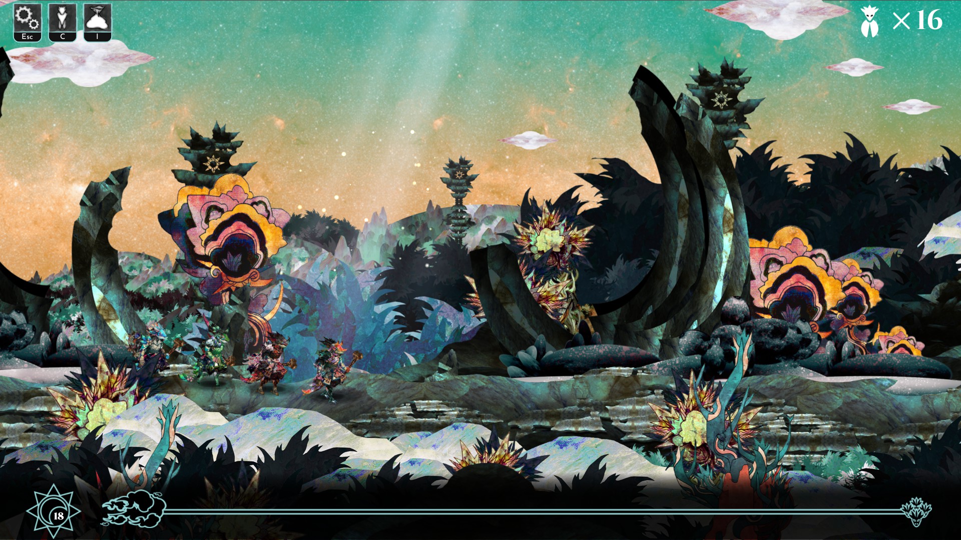 Mirages of Winter marque d'emblée pour sa peinture à l'encre, qui révèle une haute qualité artistique dans le studio parisien Mirari Games. Aux premières notes, on remarque une vitalité poétique qu'il sera difficile de retrouver ailleurs. Les tableaux et sonorités nourrissent un travail remarquable sur le lyrisme japonais, en suivant la douce promenade d'un pêcheur qui assiste au passage des saisons. Quelques puzzles jalonneront notre voyage, avec en creux l'exploration de philosophies shintoïstes et du rapport humain à la nature. Déjà disponible sur mobile, Mirages of Winter sortira très prochainement sur PC.