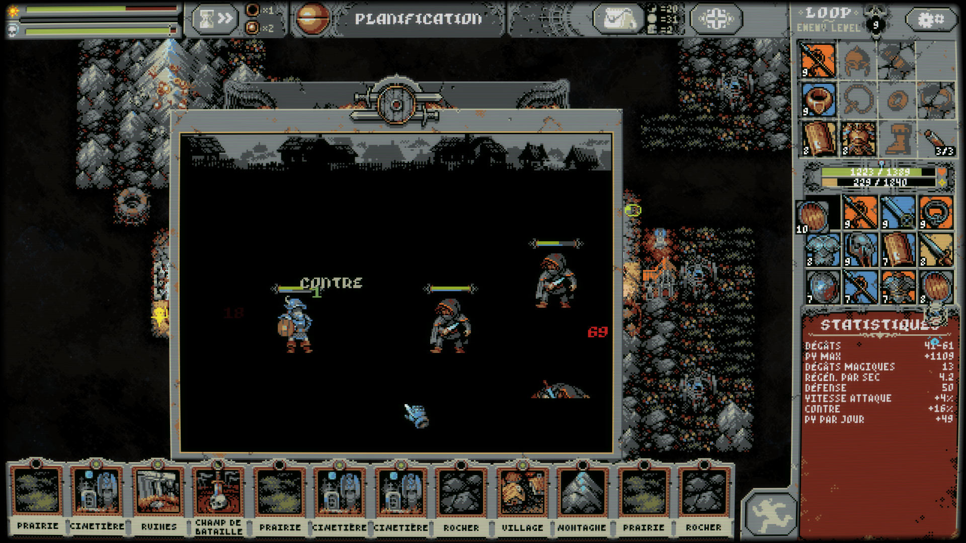 Dans Loop Hero, vous serez à peu près en contrôle de tous les aspects du jeu, sauf votre personnage et c'est là déjà que la définition du jeu devient floue : nous avons presque tous les codes du RPG, sauf la partie essentielle du role-playing game, le contrôle du personnage principal.