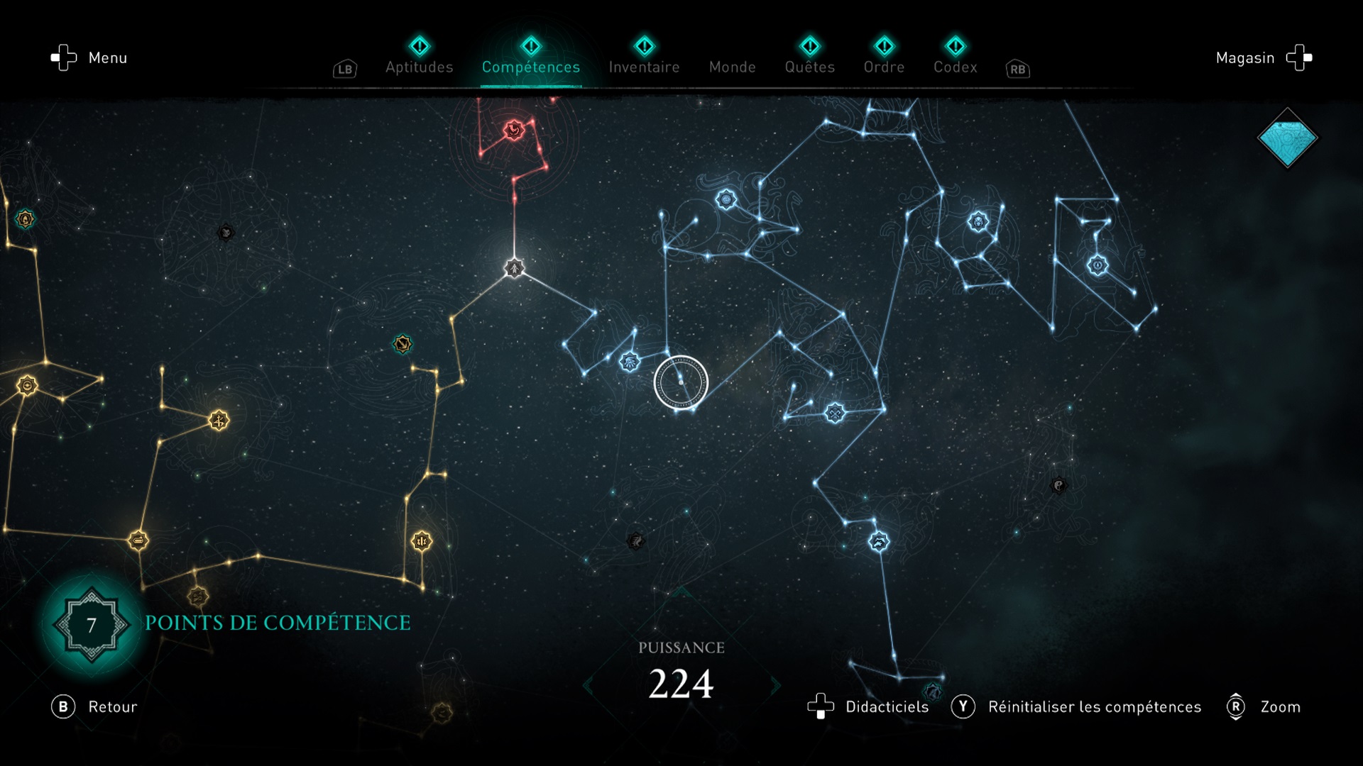 Dans Odyssey, pour affecter des compétences à votre style de combat, vous les trouviez dans l’arbre de compétence. Dans Valhalla, vos compétences sont regroupées dans l'onglet Aptitude.