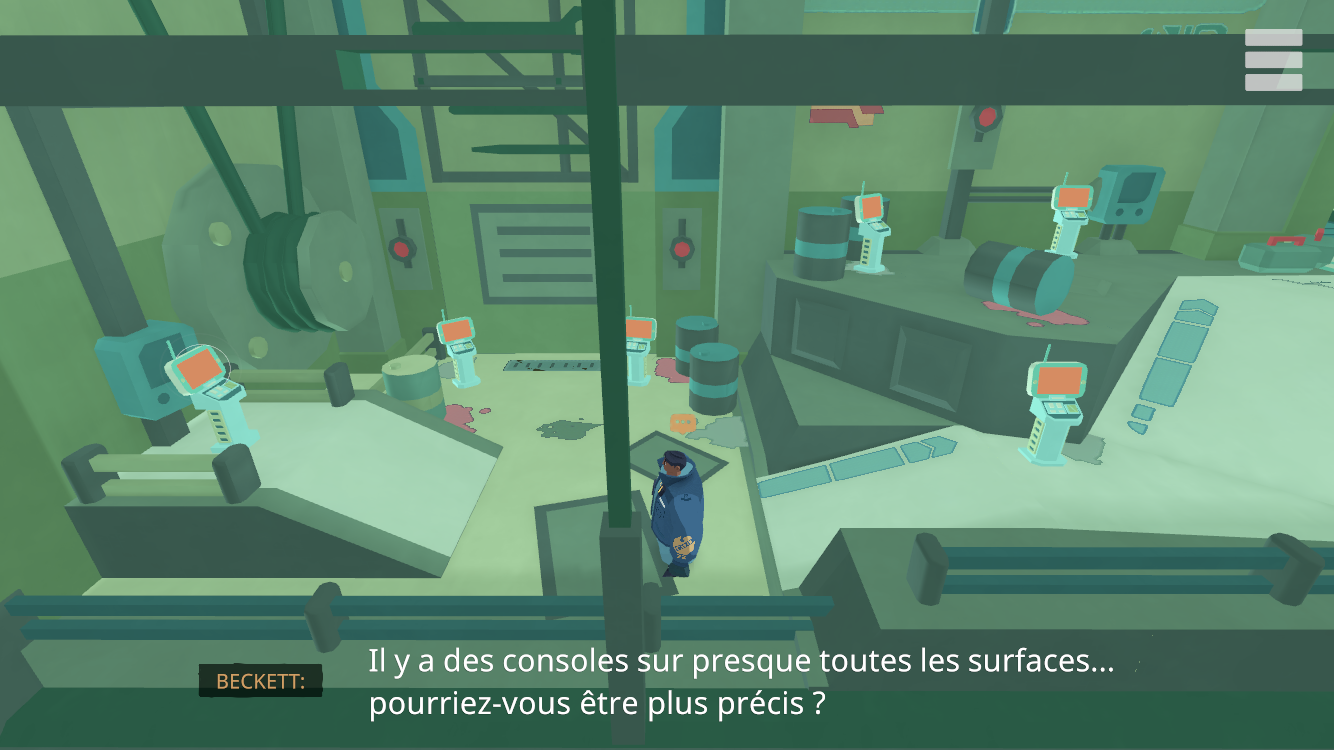 Je m'interroge sur la qualité de la traduction en français. Je passerais certains moments où elle est carrément inexistante, un message d'erreur s'affichant à la place. Mais je me suis demandé à plusieurs moments si les phrases alambiquées et loufoques étaient faites exprès ou s'il s'agissait de problèmes de traduction. Il est tout de même à noter qu'à plusieurs reprises, la traduction n'était pas correcte ou incomplète.