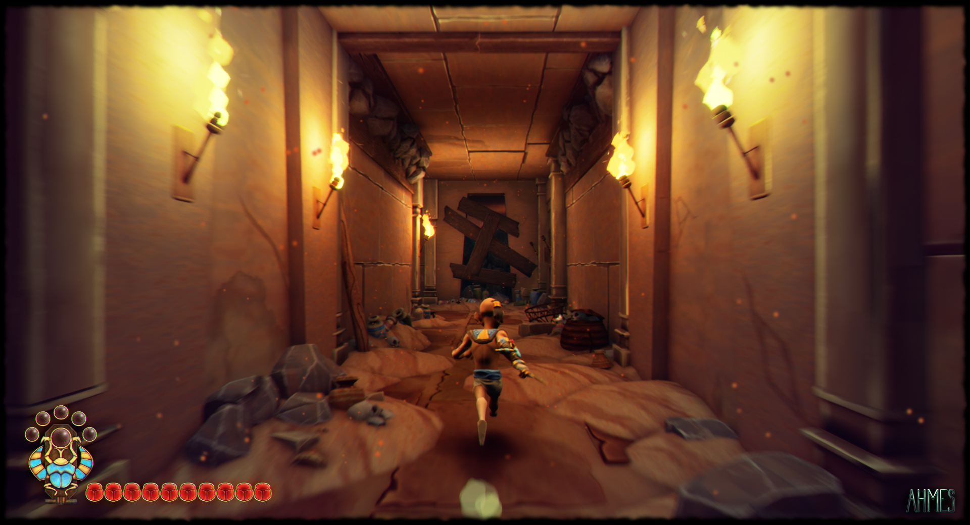Le gameplay du jeu est somme toute assez simple et est à rapprocher des Zelda sur Nintendo 64. Une vue à la troisième personne, des attaques à l’épée et à l’arc, des énigmes simples pour passer d’une salle à une autre se basant sur le fait d’appuyer sur des dalles pour ouvrir la porte suivante. Côté graphismes et direction artistique, le jeu s’en sort pas trop mal et arrive à égaler aisément certains jeux indés du genre. Même si quelques bugs subsistent, AHMES reste très agréable à jouer.