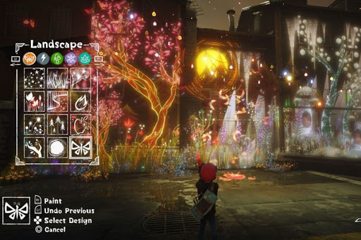 Mais ce n'est pas si simple, pour dessiner, il vous faut aussi récupérer toutes les pages de votre carnet de croquis. Sans elle impossible de peindre le moindre paysage. Les génies, sortis tout droit de votre imagination, vous accompagnent tout au long de votre chemin et pourront vous aider à de multiples occasions. Ils sont au nombre de trois et ont des capacités spécifiques, le feu, l'électricité et le vent. Chaque particularité permettra d'interagir sur le décor et de débloquer Ash dans ses pérégrinations.