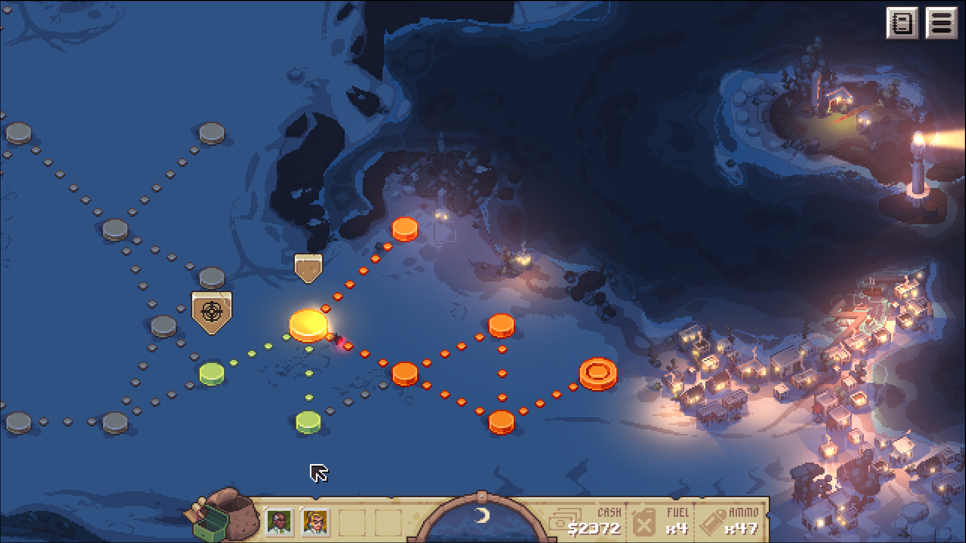 Aller d’un lieu à un autre consomme une unité d’essence, il vous faut donc faire attention à cet or noir en optimisant vos déplacements pour en trouver. C’est également pendant cette phase que vous pourrez gérer l’équipement de vos personnages.