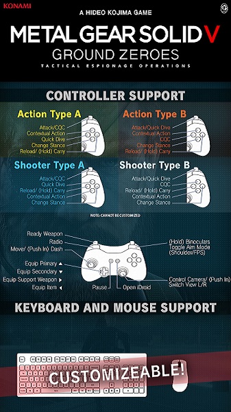 infographie controles Metal gear Solid V Ground Zeroes Pc