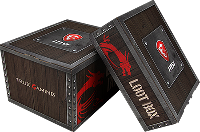Surfant sur la vague de cette mode tant décriée dans les jeux vidéo contemporains, MSI décide de lancer deux lootboxes remplies de goodies arborant le logo et les couleurs de la marque. Elles contiendraient à elles deux : un tapis de souris, une souris, un sac à dos, un casque et une peluche de la mascotte de MSI.