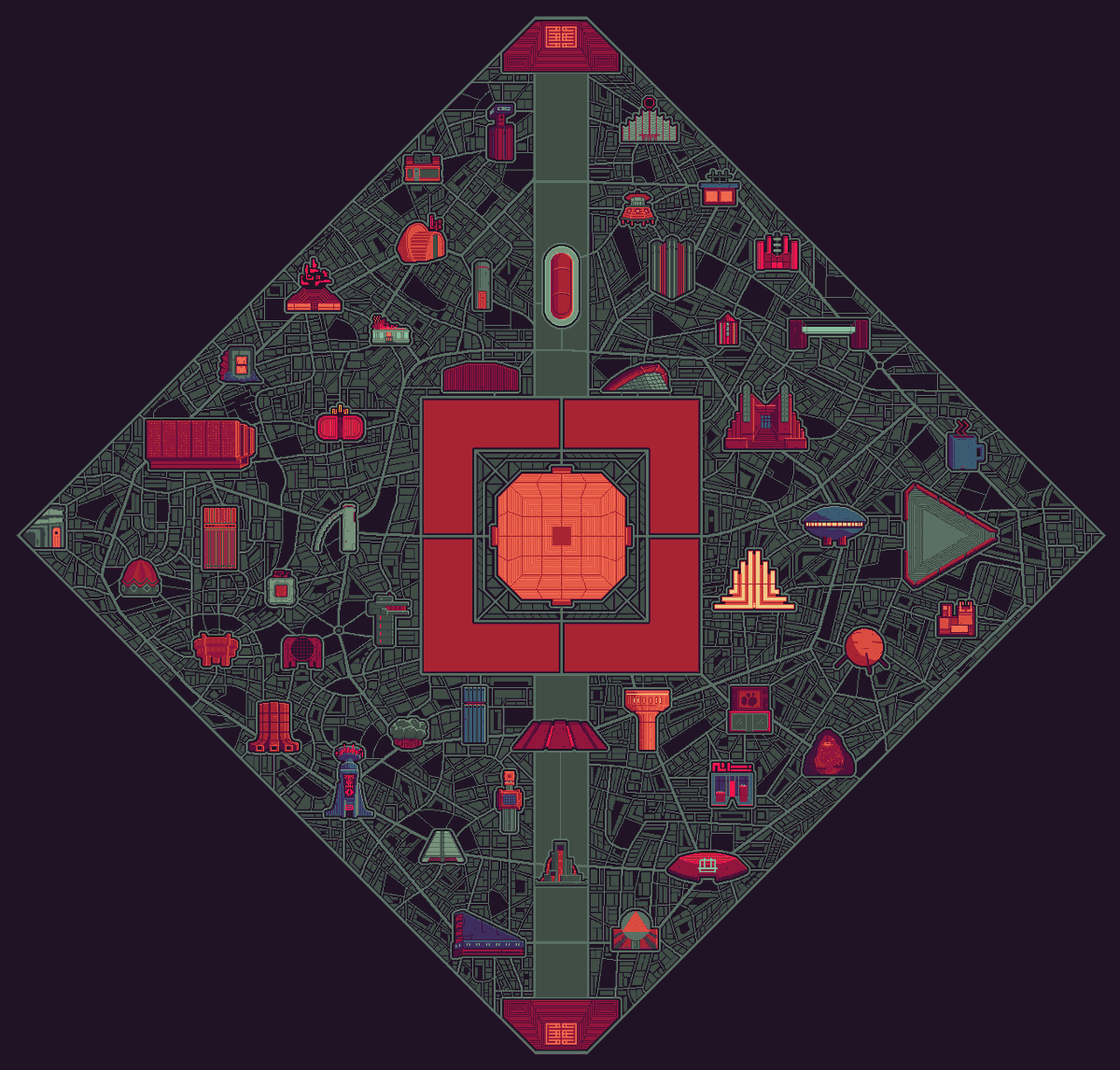Tout débute dans une cité flamboyante et futuriste qui a certains attraits des villes tentaculaires de Coruscant ou Trantor. L'atmosphère est imprégnée de deux couleurs, rouge et noir, qui apportent la sensation très mélancolique d'un coucher de soleil, mais les teintes fortes et appuyées installent une brutalité nerveuse. Ce n'est d'ailleurs pas étonnant de ressentir dès le commencement un certain malaise, car la ville est dominée par une entité politique écrasante.
