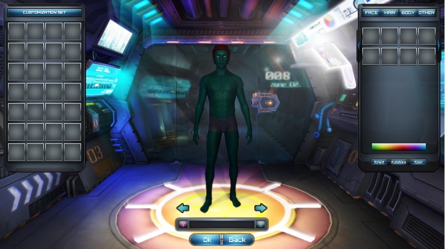 Nous allons donc commencer par le mode histoire. On débute tout d'abord par une séance de création de personnage comportant une palette d'options pour le moment relativement limitées. Il est possible de modifier le sexe, le visage, la coiffure ainsi que la couleur du corps du personnage :