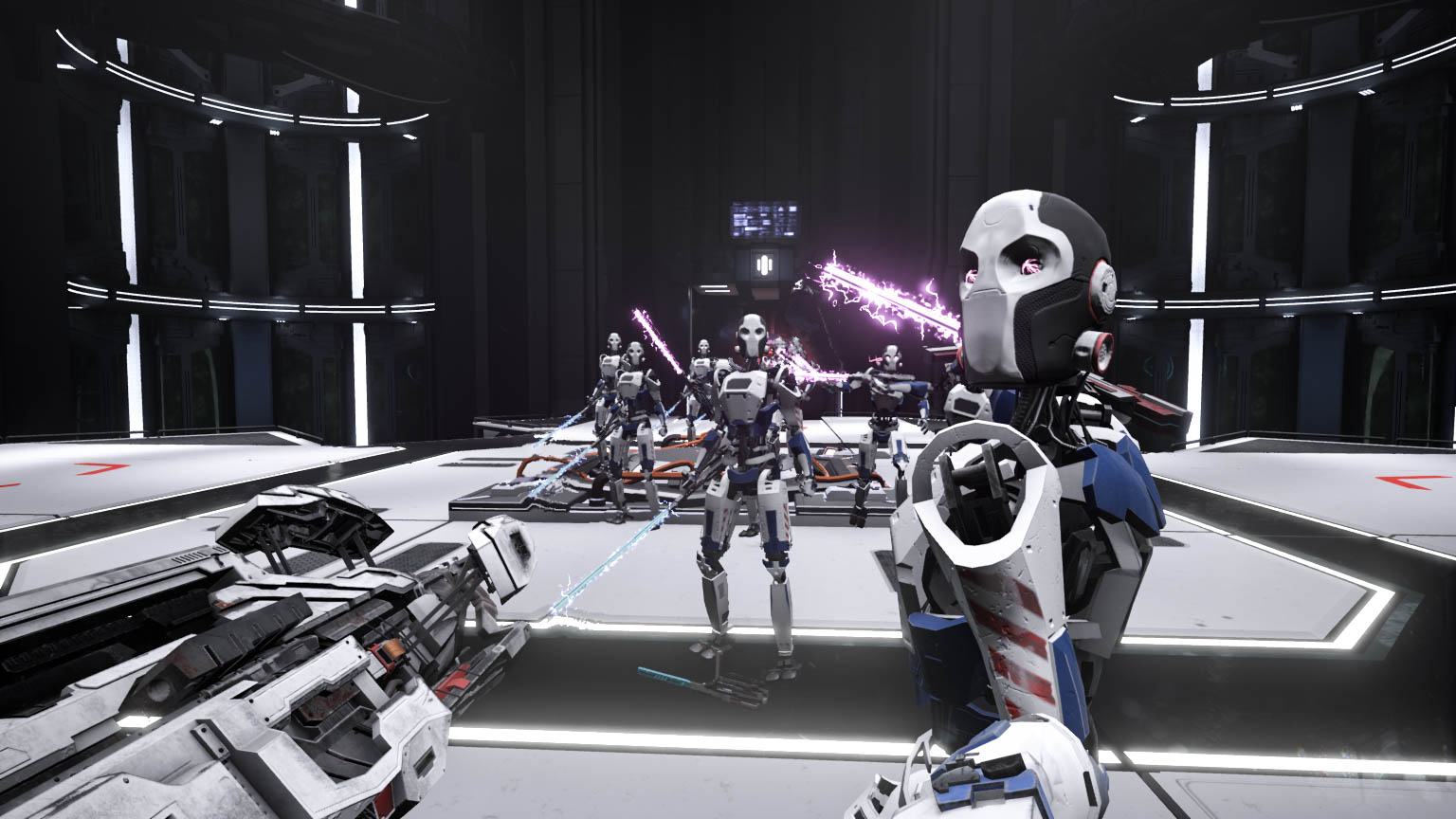Malgré une certaine épuration des niveaux inhérente à beaucoup d’univers sci-fi, le jeu est convaincant. Les effets visuels sont présents pour augmenter la sensation de nervosité. Chaque fois que vous serez touché, votre vue se brouillera durant un court instant. Se déplacer de côté ou tourner penchera votre personnage. Effectuer un dash avant donnera un rapide effet de tunnel. Dans Protocore, tout est fait visuellement pour vous immerger.