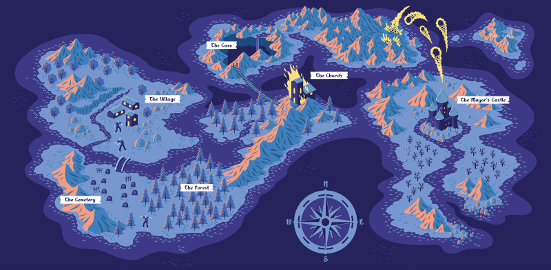 Konamco c'est la blague, entre Konami et Namco, comme un faux constructeur de jeux vidéo. Et de façon générale, en effet, je suis plus orienté rétro-gaming. J'aime mieux jouer à Zelda 3 qu'aux jeux qui existent aujourd'hui. Moi, je vois bien dans Zwandania un Castlevania ! J'y ai mis tout ce que j'aimais étant petit. Il faut savoir qu'enfant, j'ai même eu une PC-Engine de NEC, une console 8-bit qui rivalisait avec les 16-bit, sur laquelle est sorti le meilleur jeu de Tennis du monde selon moi : Final Match Tennis. Dans Zwandania, il y a diverses références, parfois modernes mais essentiellement nostalgiques ; les zombies, c'est un peu Ghost & Goblins, ce côté gothique que j'aime aussi dans Castelvania (à retrouver également dans la police d'écriture de l'album). Il y a un côté écolo avec le maire qui balance dans la rivière un truc radioactif, et l'héroïne, c'était important, étant donné que dans le retrogaming, il n'y a pas trop d'héroïne globalement. L'histoire est aussi simple que les histoires de jeu vidéo de l'époque, elle est canonique et linéaire. Les niveaux sont assez typés et c'est plutôt régulier dans la progression.
