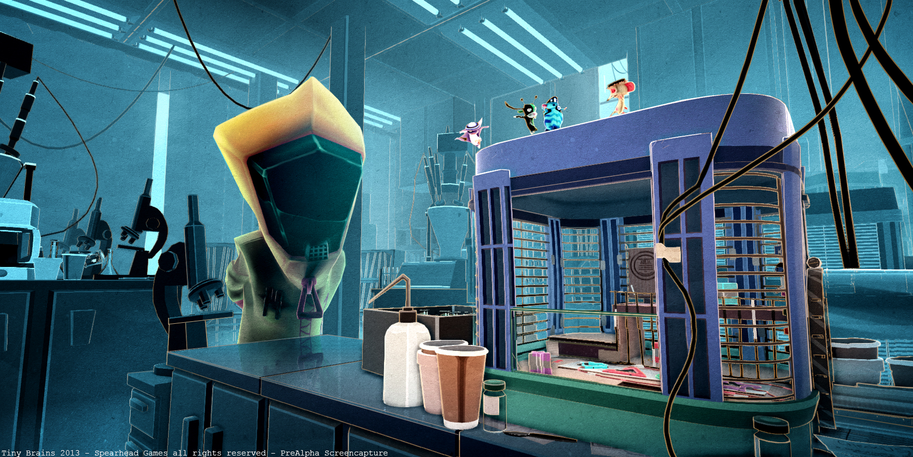 Dans Tiny Brains vous incarnez l'un de nos quatre cobayes dotés chacun d'un pouvoir différent. Si vous n’êtes pas assez, vous aurez la possibilité de switcher entre les sujets, un peu comme dans les jeux Trine et Trine 2. Il faudra aussi, à la manière d'un Portal / Portal 2, résoudre des "énigmes" pour passez au niveau suivant en vous aidant de vos capacités.
