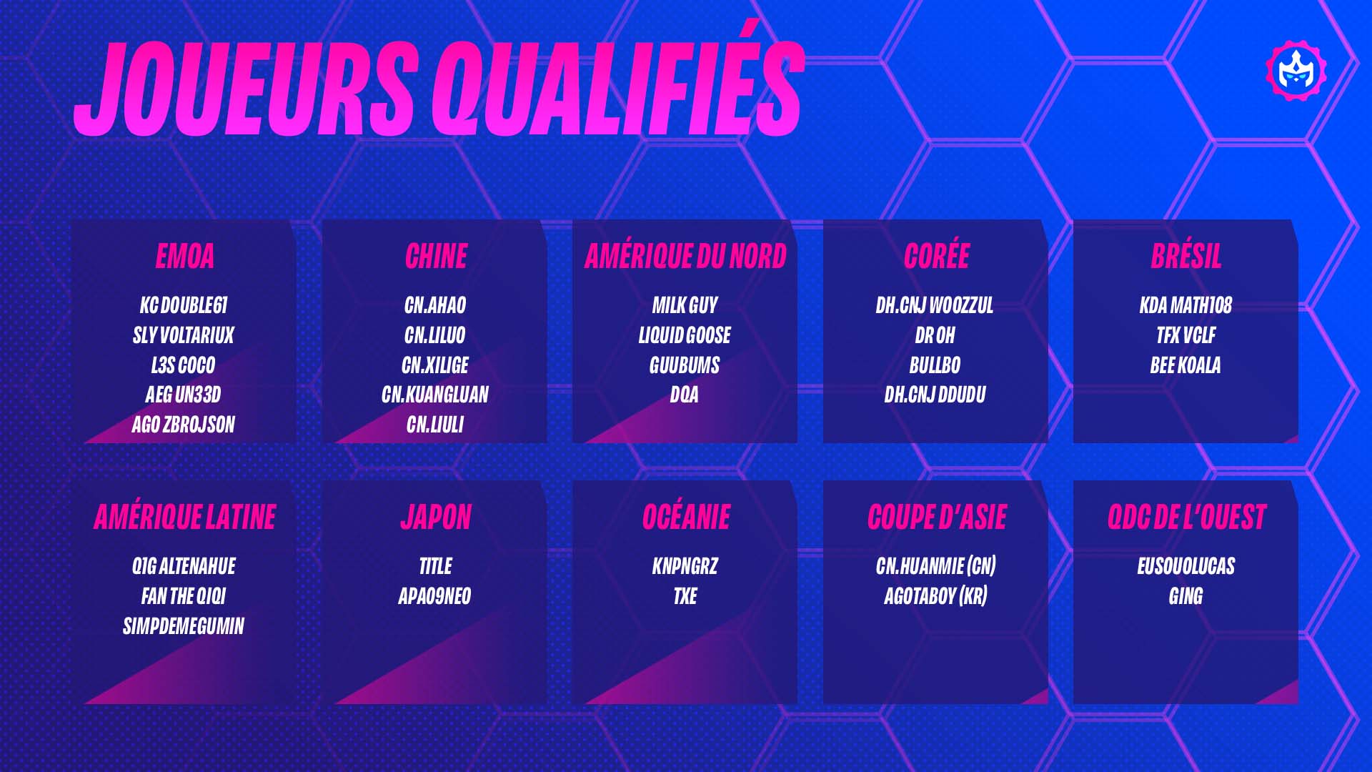 Les habitués des tournois internationaux de League of Legends ne seront pas étonnés d'apprendre que la Chine et la Corée seront des menaces sérieuses, mais les Français seront présents en force avec quatre joueurs ! Double61, le retour du roi, champion des premiers championnats du monde de TFT et récent vainqueur des championnats d’Europe, revient sous les couleurs de la K-corp en espérant sûrement récupérer sa couronne trois ans plus tard. Voltariux, joueur de l’écurie concurrente Solary et grand rival du premier, sera aussi de la partie. Un33d, ancien joueur pro Hearthstone, portera les couleurs de Aegis. Enfin, “Les Collègues”, petit nouveau du grand public, peut créer la surprise après sa victoire la semaine dernière à la Gamer Assembly.